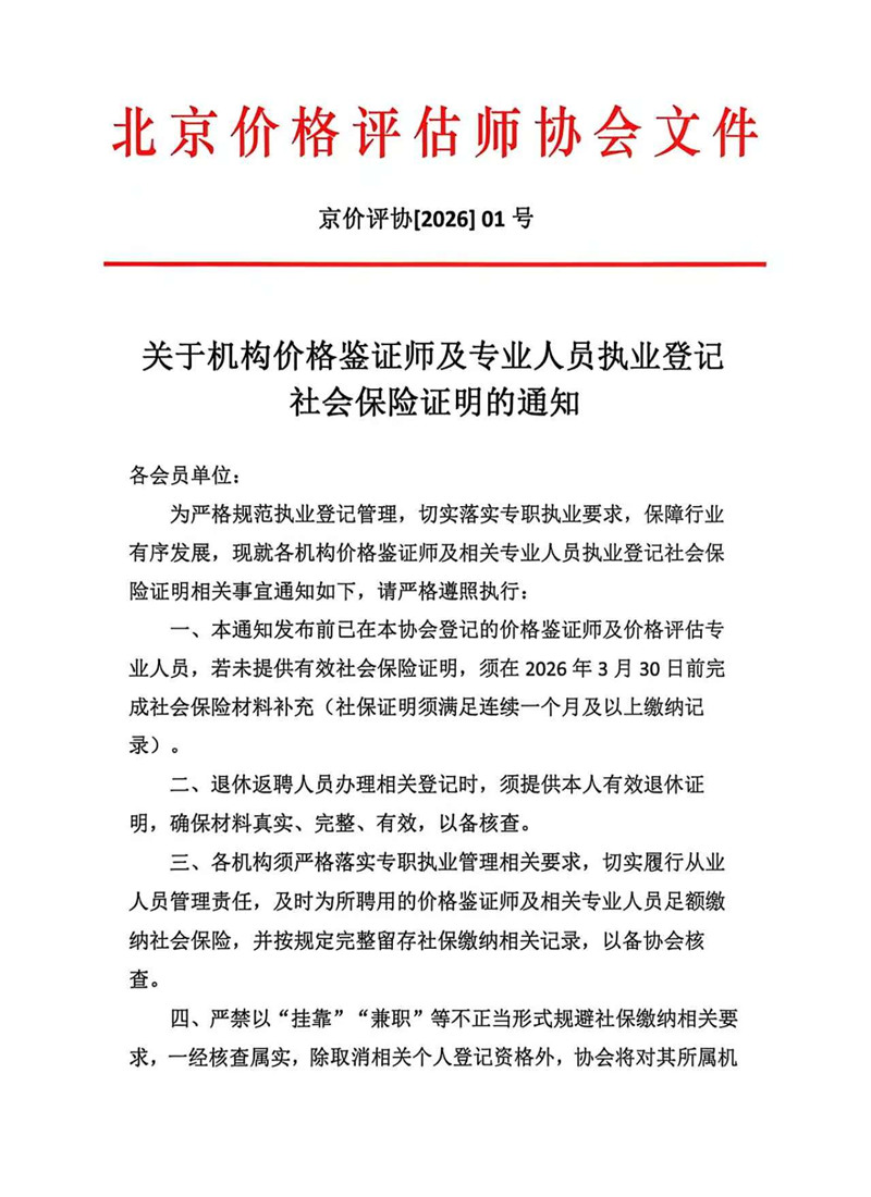 关于机构价格鉴证师及专业人员执业登记 社会保险证明的通知